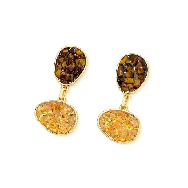 BRINCO FRAGMENTOS COM PEDRA NATURAL (DUAS PEDRAS)