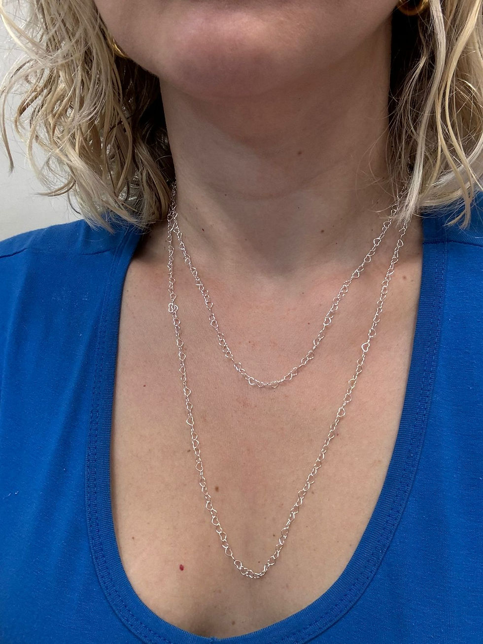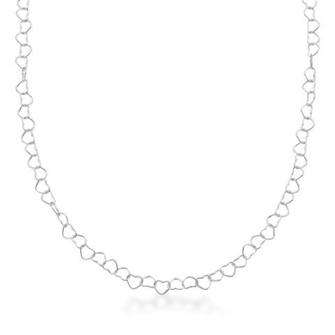 CORRENTE DE PRATA EM MALHA DE CORAÇÕES VAZADOS 60CM