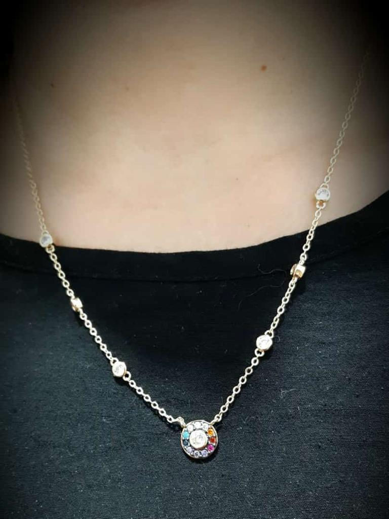 CORRENTE COM PINGENTE REDONDO COLORIDO E PONTOS DE LUZ